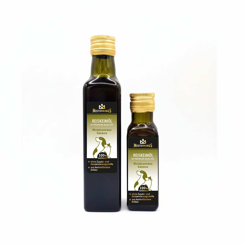 - Reiskeimöl ist eine gute Quelle für mehrfach ungesättigte Fettsäuren, die für die Gesundheit von Hunden und Katzen wichtig sind.